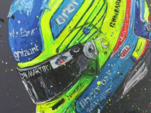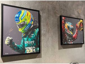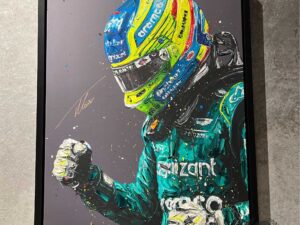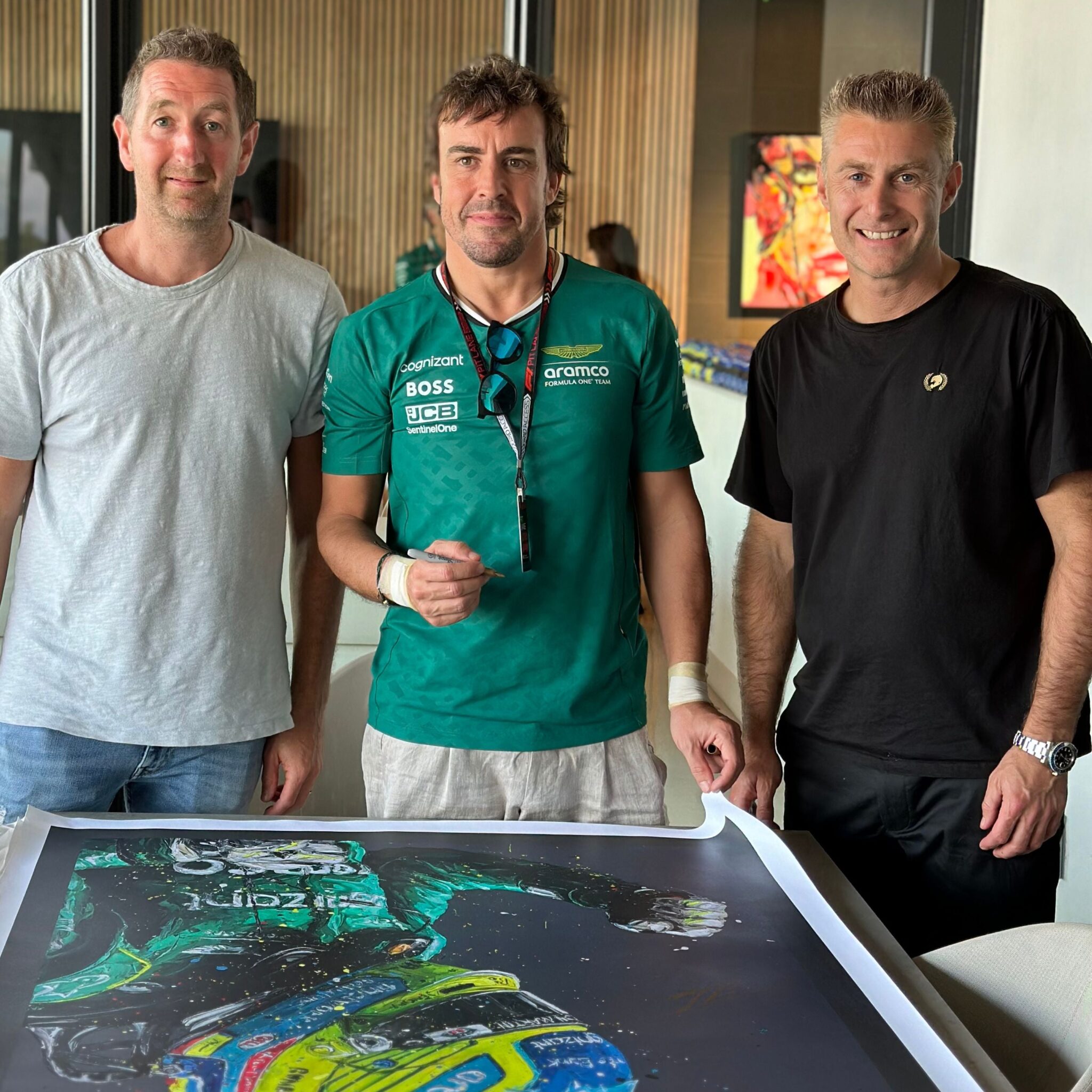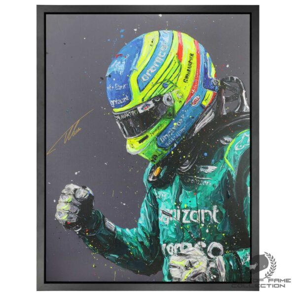 Fernando Alonso has signed a very limited edition of just 14 of these stunning canvases hand embellished by Artist Paul Oz. All 14 have been hand signed and will be framed and mounted.