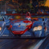 The winning number two Joest Audi R8 of Herbert, Capello, and Pescatori is featured leading the Champion Audi R8 into turn one on the way to victory at the 12 Hours of Sebring. Autographed by Rinaldo Capello, Johnny Herbert, and Christian Pescatori. Edition of 500.