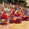 This fine Ferrari print by Tom Bucher features Team Scandia Ferrari winning the 12 Hours of Sebring on March 18, 1995, We are offering print #100/850. The print features the winning drivers of Andy Evans, Fermin Velez, and Eric Van de Poele. A print of the car #3 is featured on the bottom right margin. This is a must for any Ferrari collector. Autographed by Andy Evans and Fermin Velez. The print measures 28” x 22”. COA included.