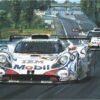 This print was created from an original painting by Nicholas Watts. It features the victorious McLaren F1 GTR of JJ Lehto, Yannick Dalmas, and Masanori Sekiya shown driving down the Mulsanne Straight in horrible weather conditions. This victory made McLaren become only the third manufacturer in the history of Le Mans to be victorious in a race on the first attempt. Held the 17-18 of June 1995. Edition size of 500. Available signed by Dalmas, Lehto, and Sekiya along with the additional signatures of Mario Andretti and Derek Bell. This very rare and highly collectible print has long since been sold out in the primary market.