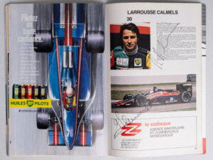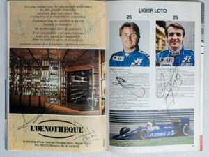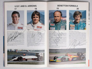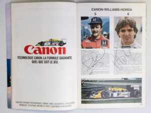 What is unique about this Grand Prix Program is the autographs of world champions Ayrton Senna, Nigel Mansell, Nelson Piquet and Keke Rosberg.