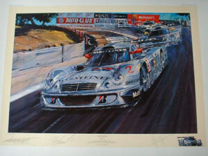 This print is taken from an edition of 500 by Nicholas Watts. The Mercedes CLK LM driven by Klaus Ludwig and Ricardo Zonta leads the car of Bernd Schneider and Mark Weber to ultimately win the F1A GT final at Laguna Seca, clinching the championship crown on October 25th, 1998. The image area is a bit larger than most Nicholas Watts editions.