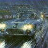 The Vanwalls of Stirling Moss and Tony Brooks are shown leading Juan Fangio at the 1957 Italian Grand Prix at Monza. Moss went on to victory and Brooks posted the fastest lap. This print has long been sold out in the primary market. Autographed by Stirling Moss, Tony Brooks, Frank Costin, and Juan Manuel Fangio. Certificate of authenticity provided with print.