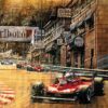 This is one of the most popular prints ever produced from an original Gavin Macleod painting. The scene depicts now six-time Formula One World Champion MIchael Schumacher winning the 1999 Monaco Grand Prix, where he raced for Team Ferrari along with teammate Eddie Irvine.