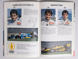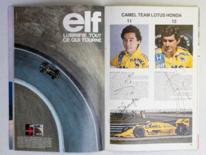 What is unique about this Grand Prix Program is the autographs of world champions Ayrton Senna, Nigel Mansell, Nelson Piquet and Keke Rosberg.