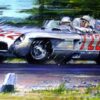 This print is taken from an edition of 850 by Nicholas Watts. In a memorable performance under atrocious conditions, the Pratt and Miller Corvette C5-R team finished first and second in the GTS class at Le Mans 2001. The class-winning car of Ron Fellows, Johnny O’Connell and Scott Pruett is shown leading the sister car of Andy Pilgrim, Frank Freon and Kelly Collins out of the second chicane. The print is beautifully produced and is signed by Johnny O’Connell, Scott Pruett, Andy Pilgrim, Frank Freon, Kelly Collins and Ron Fellows.
