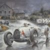 A classic Formula One racing print taken from an original painting by Juan Carlos Ferrigno. The scene depicts Stirling Moss, who started the race from the first row driving a Maserati 250F to the winners rostrum in the 1956 Monaco Grand Prix. The edition is limited to 500 artist-signed and numbered prints, personally autographed by Sir Stirling Moss.